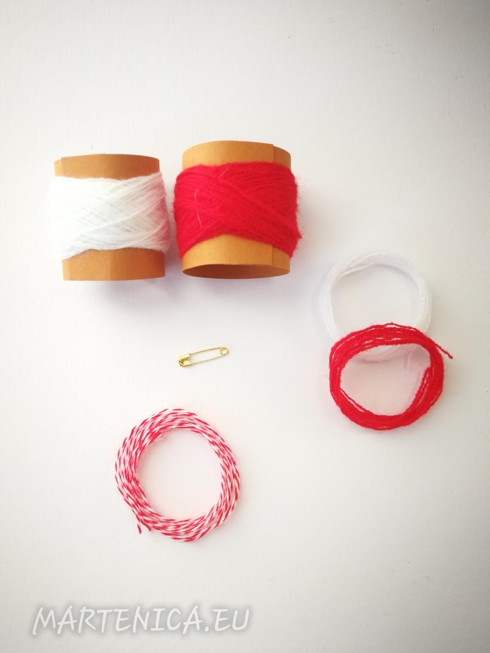 Комплектът включва всички необходими материали за изработка на една мартеница: усукана бяло-червена прежда, бяла прежда, червена прежда, и безопасна игла. Видео урок на Youtube канала. Ножичката не е включена в комплекта.
