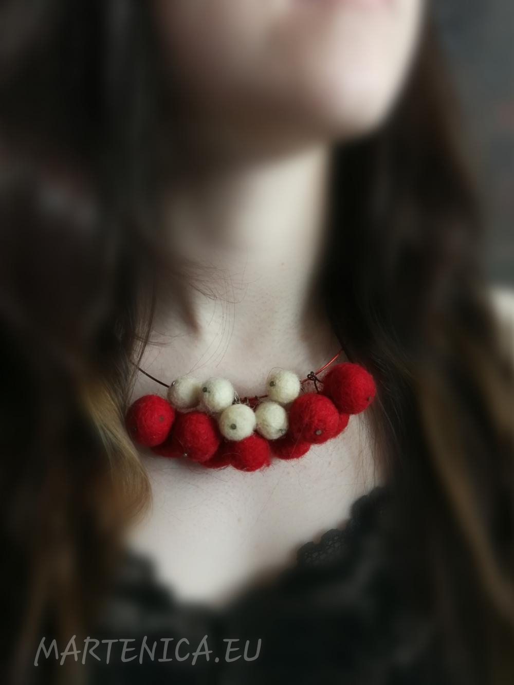 Материал:вълна, метал Някога изработването на мартениците е ставало от жените в семейството рано преди изгрев слънце. На моми и булки мартеницата се е слагала като гердан. (к14)